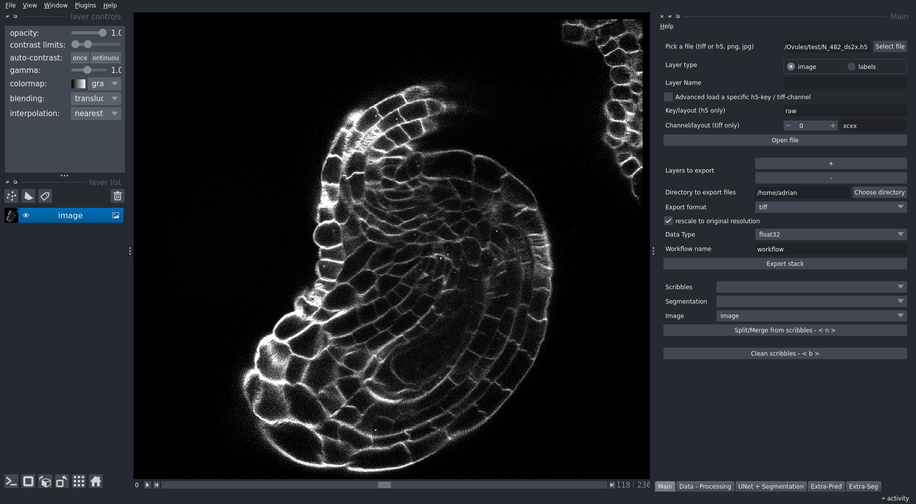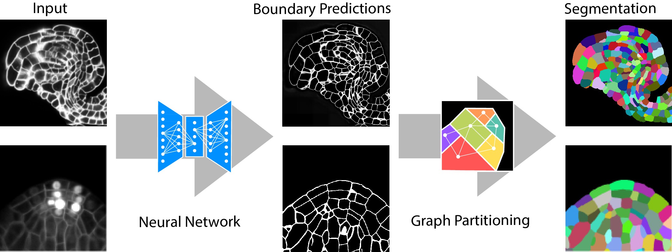 PlantSeg is a tool for cell segmentation in densely packed 3D images. It works best for images acquired with confocal and light-sheet microscopy. It is a two stage pipeline: CNN prediction followed by a graph partitioning. A large repository of pre-trained CNNs comes with the package.