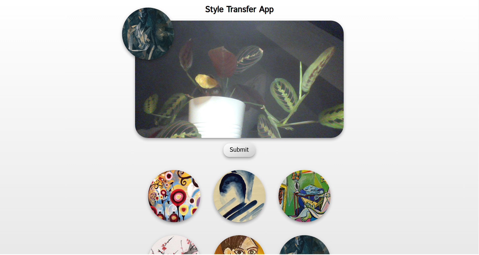 A simple web app which allows the user to take a photo with the webcam and apply a neural style transfer to it.
